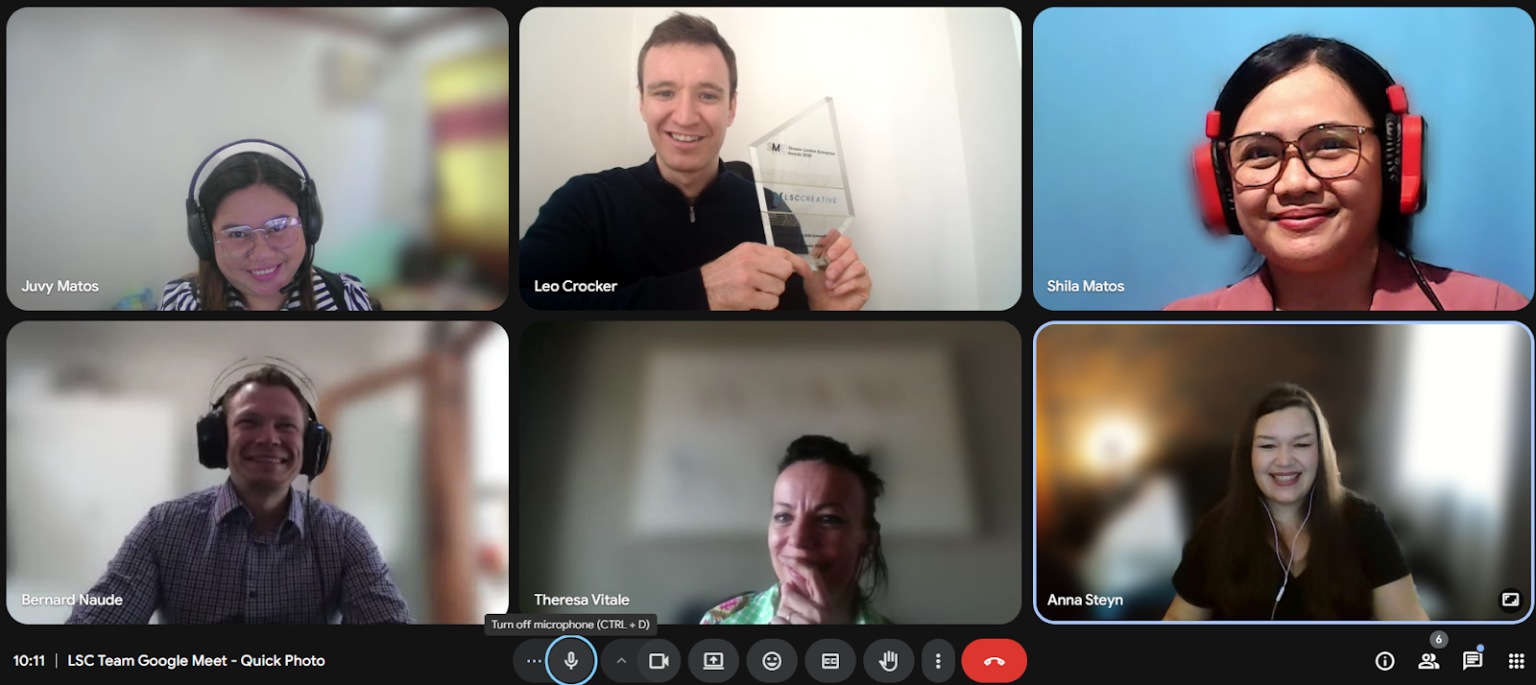 • Leo holding an award we received showing how our award-winning LinkedIn approach made an impact in 2025